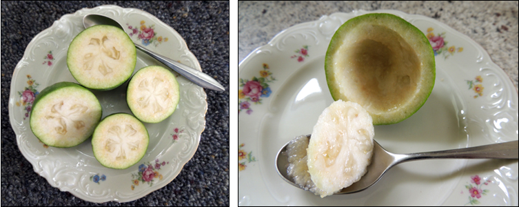 Our feijoas have been phenomenal. If there ever was an amazing feijoa season, this has been it. Numerous fruit are still falling on a daily basis and whether they are tiny or large, they taste exquisite. I know some people can’t abide the flavour, but ours are so JUICY and not at all dry. We have two trees and the fruit from each tastes different.