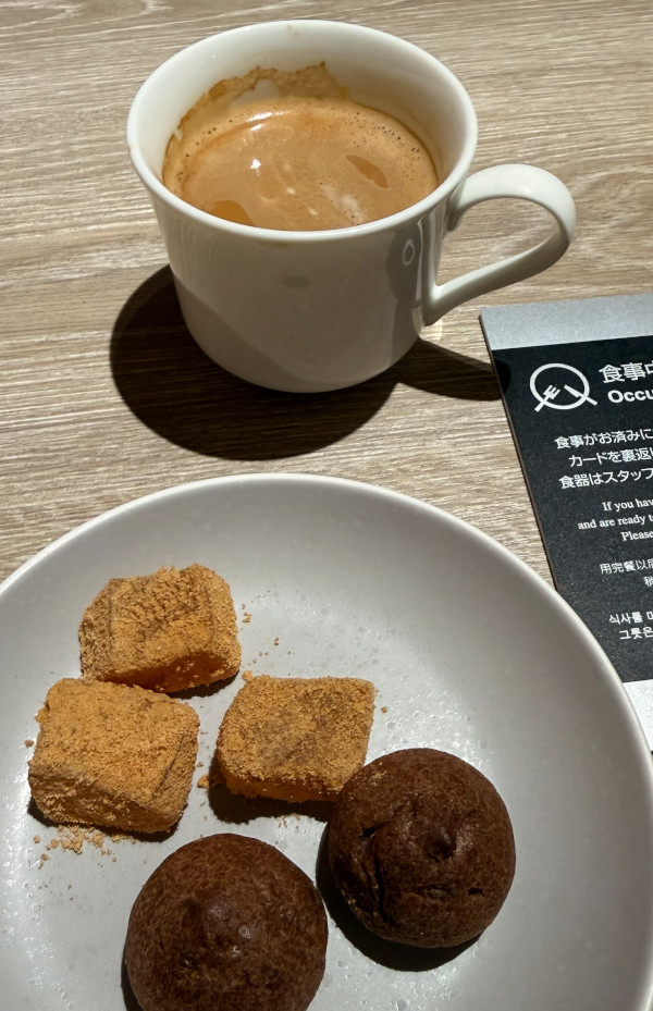 For my second round I was able to squeeze in some warabi mochi (which I love) and a couple of mini chocolate cream puffs (which I probably didn’t need), but they went well with the coffee.