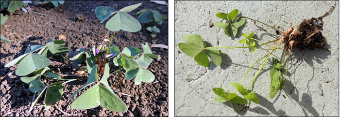 oxalis March 9, 2014 700 × 242 oxalis Oxalis Articulata, Left to Right; in situ, lifted and showing tiny bulbs