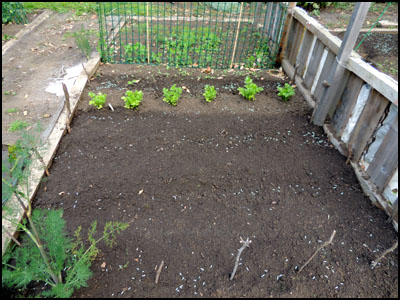 I love this new garden and even though it’s still early days and there’s not much flowering there yet, I can see it from the kitchen window and it always cheers me up. An amusing extra is that the compost was filled with seeds from the vegetable garden. Lettuces, dill, coriander, even a couple of tomatoes have sprouted. I doubt that the dill can stay there for long, but I might leave a couple.
