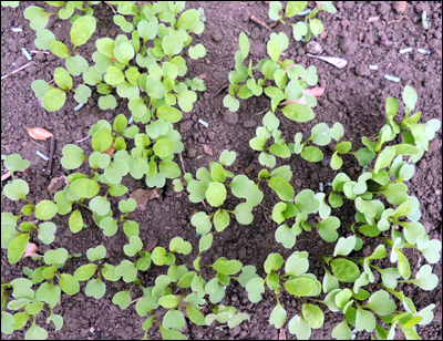 The broad bean plants were only a few centimetres tall in June, but now we’re consuming their crop. I like to nuke the beans into a paste with a little butter and miso. The plants themselves have grown far taller than we expected. The seed packet suggested staking them at one metre, but they’ve kept on growing, and now reach to over two metres. Every time a wind has howled in from a new direction, we’ve had to scurry outside to re-tie them.