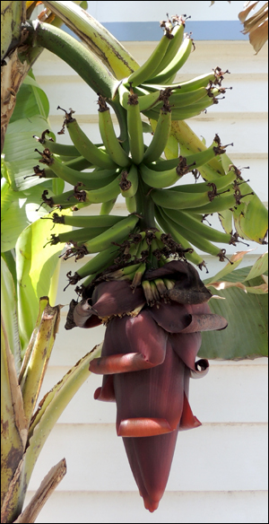 This grapevine has been slow to get established, unlike the white variety that grows rampantly on the northern side of the barn. The grape is Albany Surprise and in my opinion is far superior to the white grape, due to the sweet and spicy flavour of its juicy bunches. The vine is looking really good this year, with numerous clusters of fruit.