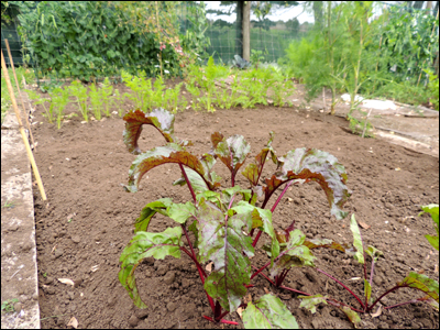 Another task we achieved since June was to dig up our congested bed of strawberries. We selected a few strong plants, and replanted them beneath the lemon verbena. We’re hoping that they’ll do better there, especially with the netting cover. Usually our strawberries get picked to pieces by the blackbirds who nest in the trees near the vegetable garden.