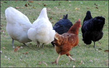 When the Black Orpingtons were little, they looked so cute running around. From a distance they looked like they were wearing burqa – hence the name Fatima. We named the other Black Orpington, Hannah, to maintain balance.