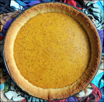 Keeping with the theme, I baked a pumpkin pie on Sunday, using some frozen mashed pumpkin from last year’s crop. This was from a Crown pumpkin – a large variety with smooth, pale grey skin and sweet orange flesh. Despite being frozen for all this time, the puree tasted very good.